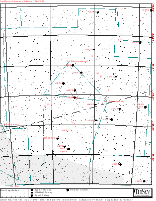 This is a more detailed view of the constellation. The map displays stars to magnitude 10, and deepsky objects to magnitude 12. Click here for a map better suited for use in the field.